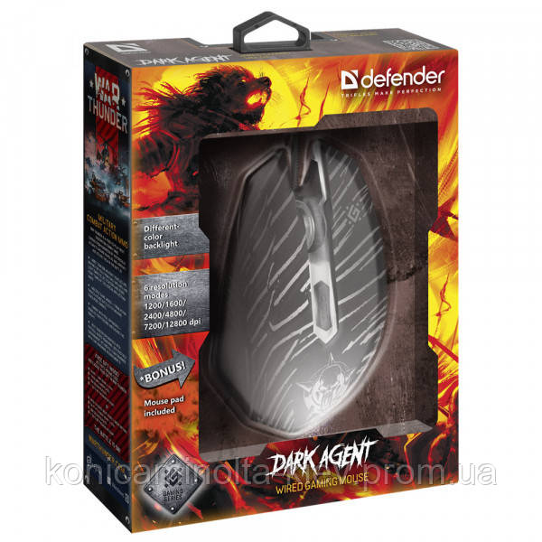 Ведмедик Defender Dark Agent GM-590L (+ килимок), 6 кн. до 12800 dpi (52590)