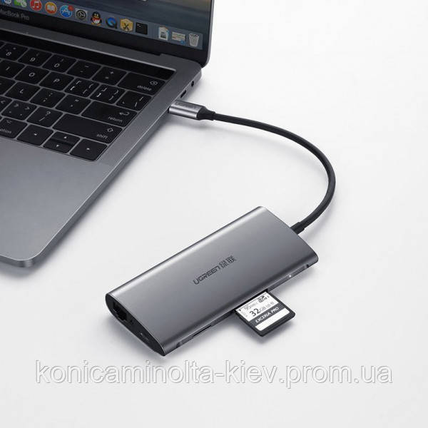 Док-станція USB3.0 Type-C –> USB 3.0×3/HDMI/RJ45/SD&TF/PD Ugreen CM121 Сіра (50538)