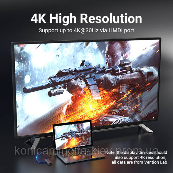 Док-станція USB3.1 Type-C –> HDMI/USB 3.0×3/RJ45/SD/TF/PD 100W Hub 8-in-1 Vention (TOKHB)